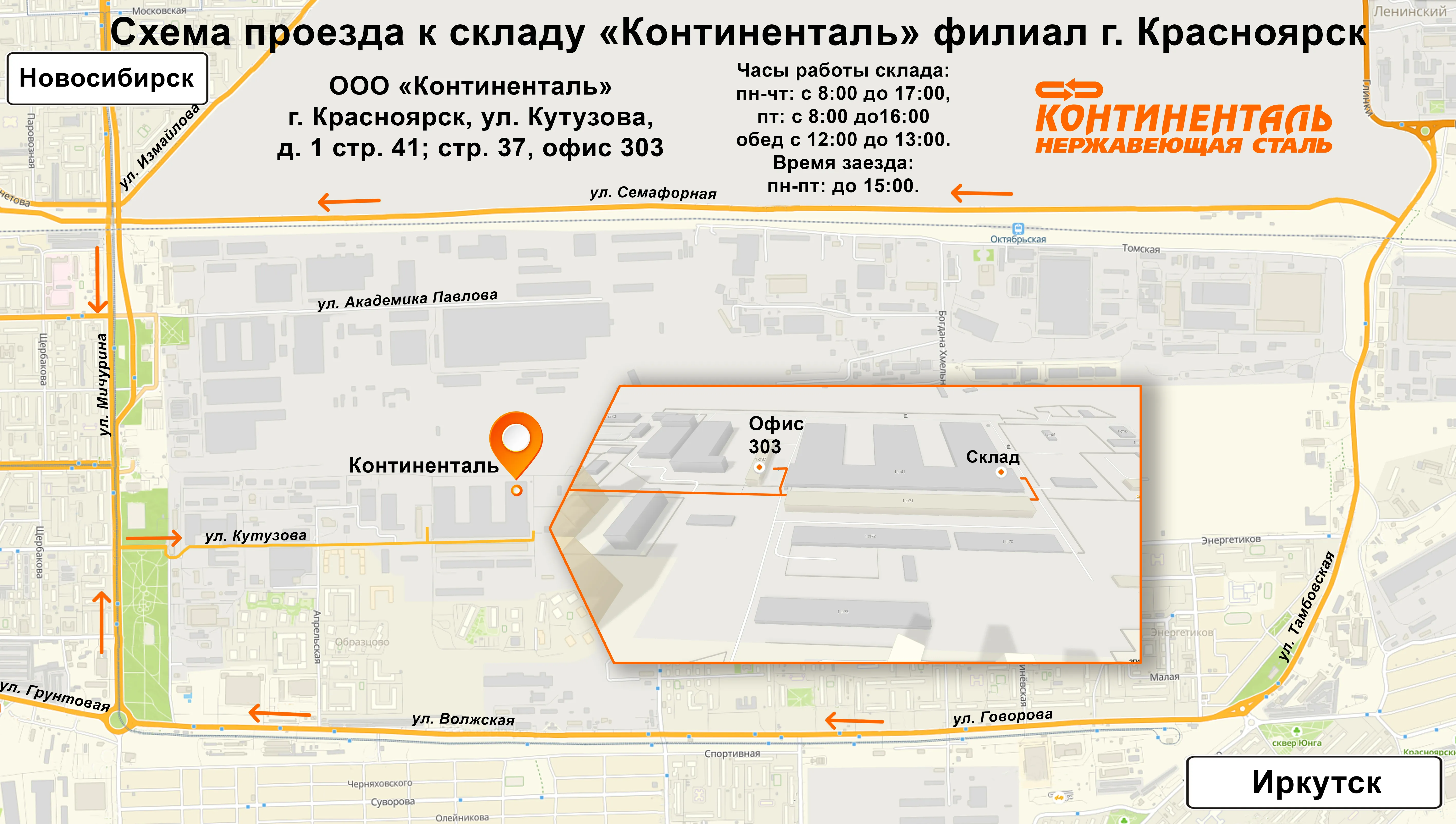 Адрес склада: г. Красноярск, ул. Кутузова, д. 1 стр. 41
